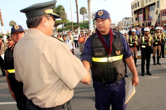 Chimbote en Línea (Policiales).- Veinte efectivos policiales y cuatro agentes de Seguridad Ciudadana de Chimbote fueron condecorados por la Policía Nacional y la Municipalidad Provincial del Santa, tras haber intervenido a peligrosos delincuentes luego de haberse puesto en marcha el patrullaje integrado.
