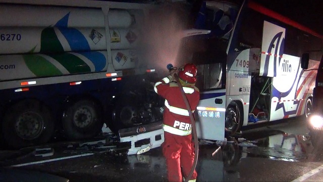 Carlos Arturo Reye y Jamiléc Monsalve Salazar viajaban de Lima a Barranquía (Colombia), pero murieron hoy a las 2 a.m. al chocar por alcance el ómnibus de la empresa de transporte internacional Turismo Brasilia con el tráiler que transportaba tanques de combustible.