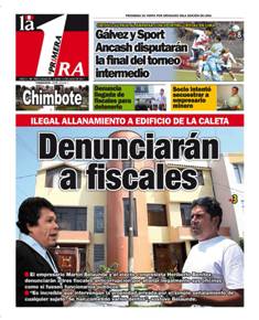 Chimbotenlinea.com (Redacción central) Con la intervención que hizo ayer la Fiscalía Especializada de Delitos de Corrupción de Funcionarios en un edificio de La Caleta, se pudo corroborar que el propietario y director nacional del Diario La Primera, también tiene una oficina en el local allanado. Y aunque no está implicado en la investigación, su presencia cercana tan cercana al asesor de Álvarez, lo cuestiona.Juan Calderón, que participó directamente organizando las campañas electorales de Cuenta Conmigo, asegura categóricamente que "Martín Belaunde no hace nada gratuito, y cada titular de La Primera le cuesta entre 20 a 30 mil nuevos soles en promedio".