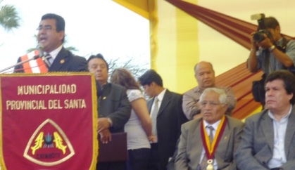 Muy por el contrario, pidió calurosos aplausos de su portátil de “comandos” – que como es usual llegaron en buses – para los congresista Heriberto Benítez y Víctor Crisólogo, quienes como ya es usual lo acompañaban en el estrado de honor, siempre sentados al lado de la autoridad regional.