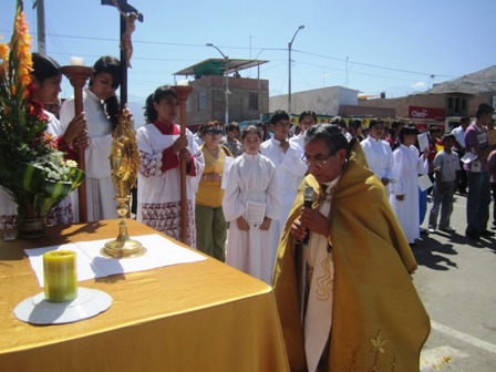 Chimbotenlinea.com (Redacción Central).- El fervor religioso no fue ajeno a los fieles del distrito de Moro, quienes ayer por la mañana, con mucho entusiasmo, participaron de la Ceremonia Solemne del Cuerpo y la Sangre de Cristo (Corpus Cristhi).