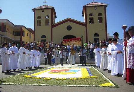 En la Municipalidad Distrital de Moro, aparte de la confección de la alfombra floral, se ofreció un altar, en donde el párroco del distrito ofreció una oración especial.