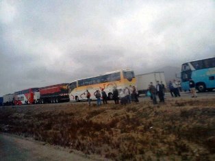 Cientos de vehículos que se dirigían de sur a norte y viceversa permanecen varados, a la espera de una solución inmediata para llegar a su destino.