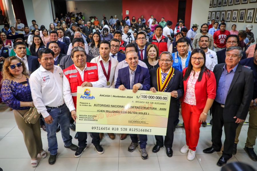Chimbote en Línea. - La Autoridad Nacional de Infraestructura (ANIN) recibió el cheque simbólico de la transferencia financiera de 100 millones de soles por parte del Gobierno Regional de Ancash para dar inicio al proyecto del nuevo Hospital La Caleta, ubicado en Chimbote, y que beneficiará a más de 500 mil ciudadanos porteños.